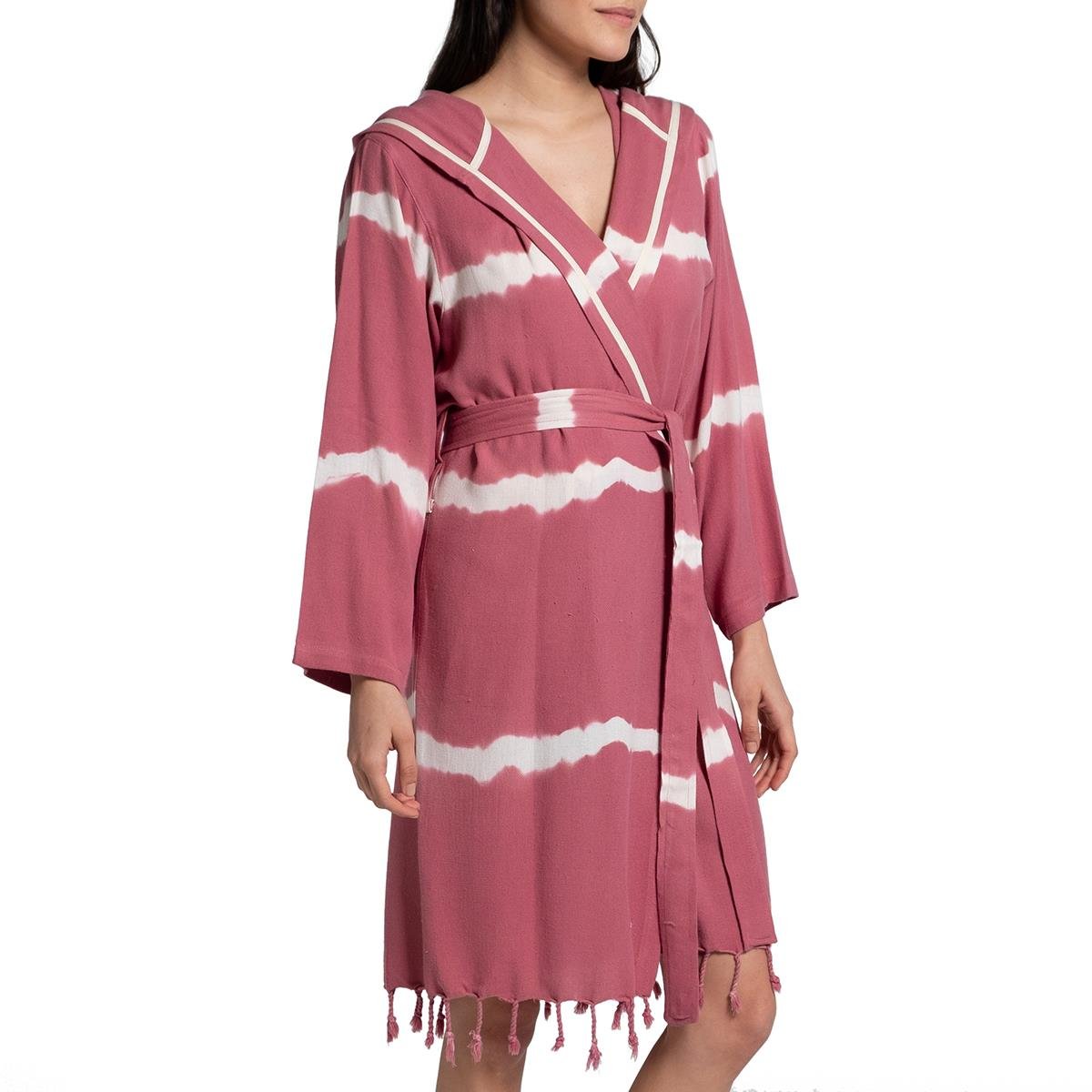 Batik Kapüşonlu Bornoz Gül Kurusu