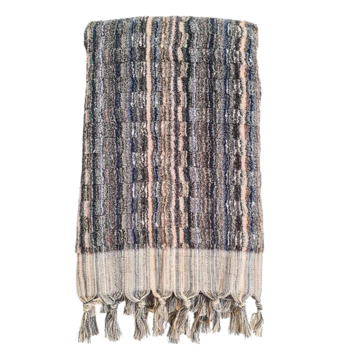 Banyo Havlusu Dikine Çizgili %100 Pamuk 80 x 160 cm 800 gram Bu güzel çizgili banyo havlusu, %100 süper yumuşak emici Türk pamuğundan yapılmıştır ve her banyo havlusu çift taraflı muhteşem şerit tasarıma sahiptir. Elde bağlanan püsküllerle, zanaatkârları tarafından geleneksel dokuma yöntemleri kullanılarak elde dokunmuştur. Son derece dayanıklı ve çevre dostudurlar ve her yıkamada artan yumuşaklıkları ve emicilikleri ile sizi yıllarca korurlar.