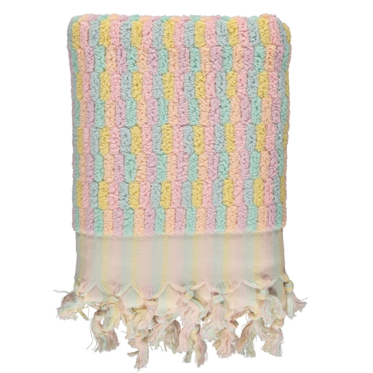 Banyo Havlusu Dikine Çizgili %100 Pamuk 80 x 160 cm 800 gram Bu güzel çizgili banyo havlusu, %100 süper yumuşak emici Türk pamuğundan yapılmıştır ve her banyo havlusu çift taraflı muhteşem şerit tasarıma sahiptir. Elde bağlanan püsküllerle, zanaatkârları tarafından geleneksel dokuma yöntemleri kullanılarak elde dokunmuştur. Son derece dayanıklı ve çevre dostudurlar ve her yıkamada artan yumuşaklıkları ve emicilikleri ile sizi yıllarca korurlar.