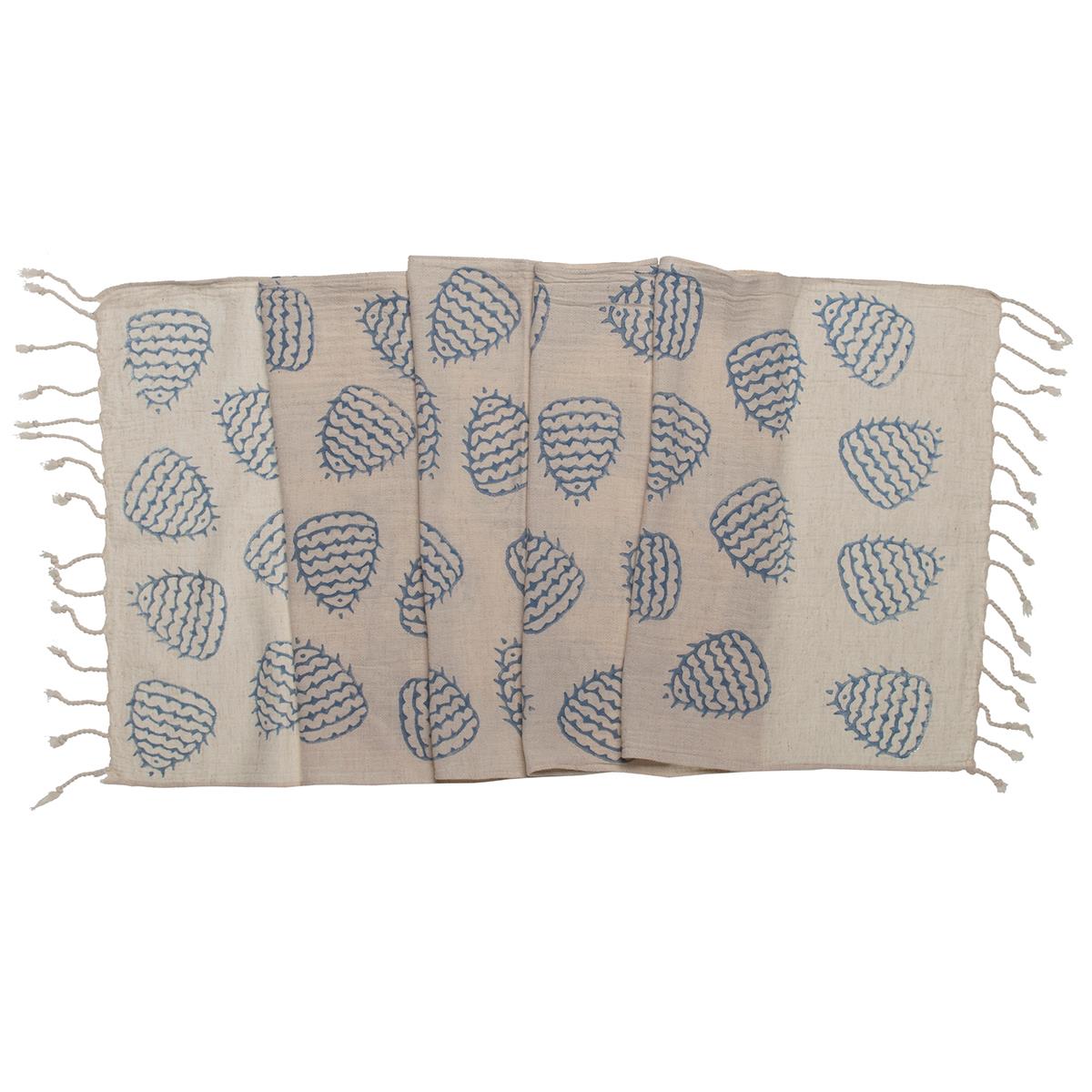 Handprinted Runner Bereket 70% Cotton 30% Linen 40 x 165 cm We produced the fabric in our factory in Babadag, pre-washed and sent to Tokat to our craftman for hand printing. All our blocks are made of linden tree. +/-%5 size changes must be tolerated as a result of Handloom production. All our looms in our factory producing these towels are almost 80 years old. Please also see our napkins, or service mats with hand print. We are only specialized in manufacturing in hand loomed old techinque machines. So our fabrics are much more durable than the ones are made in automatic machines. Cause the idle speeds of our machines nearly 80% less than automatic machines, so our yarns are not harmed that much. And they do not lose their "new look". Our hand printed, after washing, it turns to an vintage look.