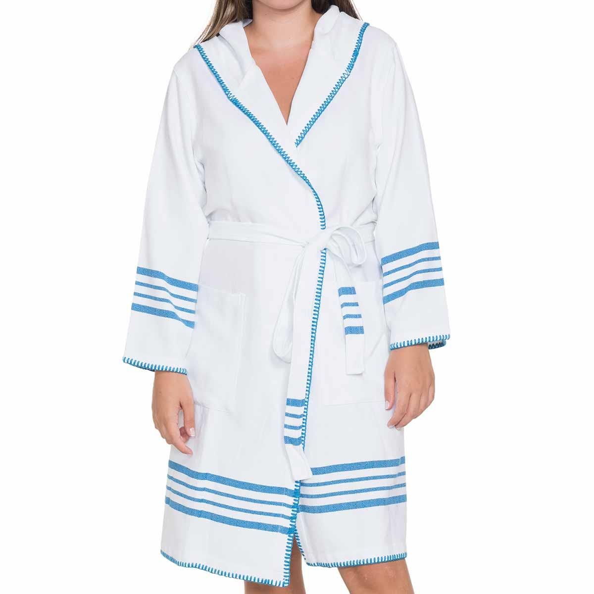 Bathrobe Hooded White Sultan Bathrobe with Hood White - Turquoise