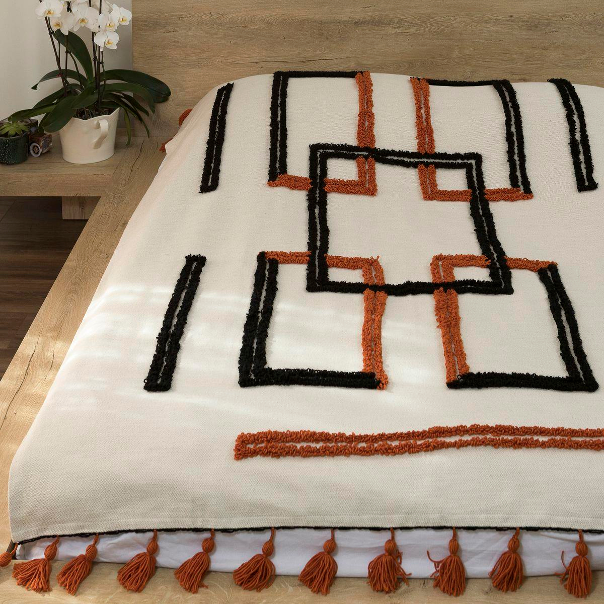 Throw - Bed Spread - Bed Cover Quma 100% Cotton 150 x 220 cm 1800 gram Handmade This handmade tufting Quma Throw is the perfect piece to give your bedroom or your living room a boho feel.Bedspread has been handcrafted with a punch technique The design is so versatile, you can actually fit it easily within multiple design themes. This throw would look great laid across the foot of a bed or the back of a sofa. The throw is the perfect size for a single adult to use as a blanket or bed cover.