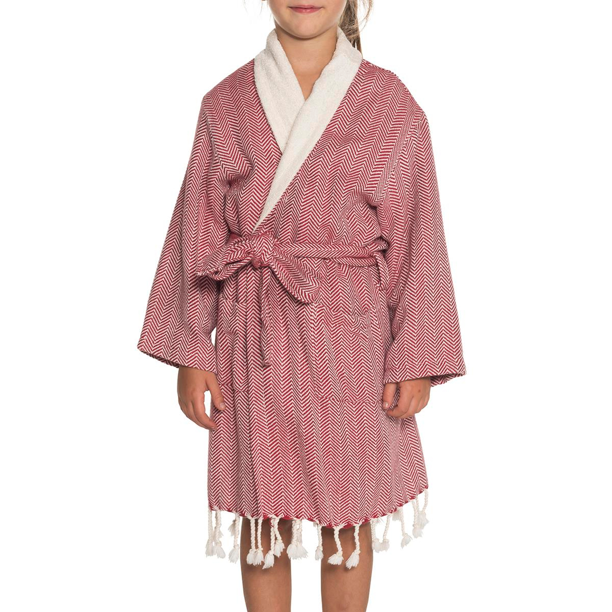 Kid's Bathrobe with Terry Lining Zigzag. 100% Cotton 400 gram Pre-washed fabric Colors and Sizes are available Sizes are 2-3 years 4-5 years 6-7 years 8-9 years Outside is our pesh fabric Zigzag inside thin terry lining. Can be ordered with or without fringes. Pesh colors can be chosen, but inside lining is always natural color. Pure bathrobes for littles.We designed it with love, we made it with love...