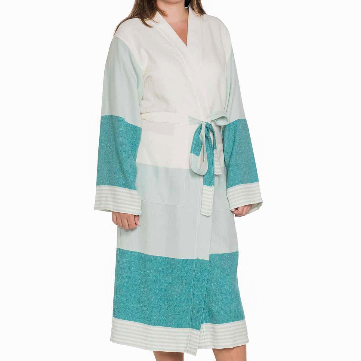 İkiz Sultan Kimono Yaka Bornoz Mint Yeşili - Fanfare Yeşili - Ham