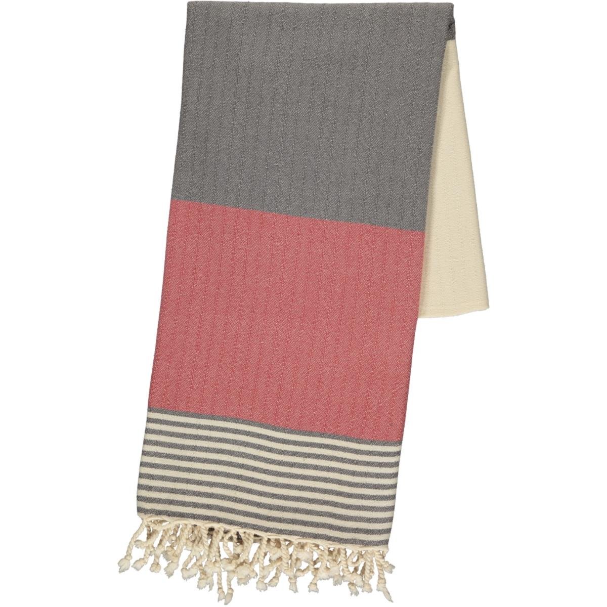 İkiz Sultan Peştemal Koyu Gri - Gül Kurusu - Ham (01PEKKL3R)