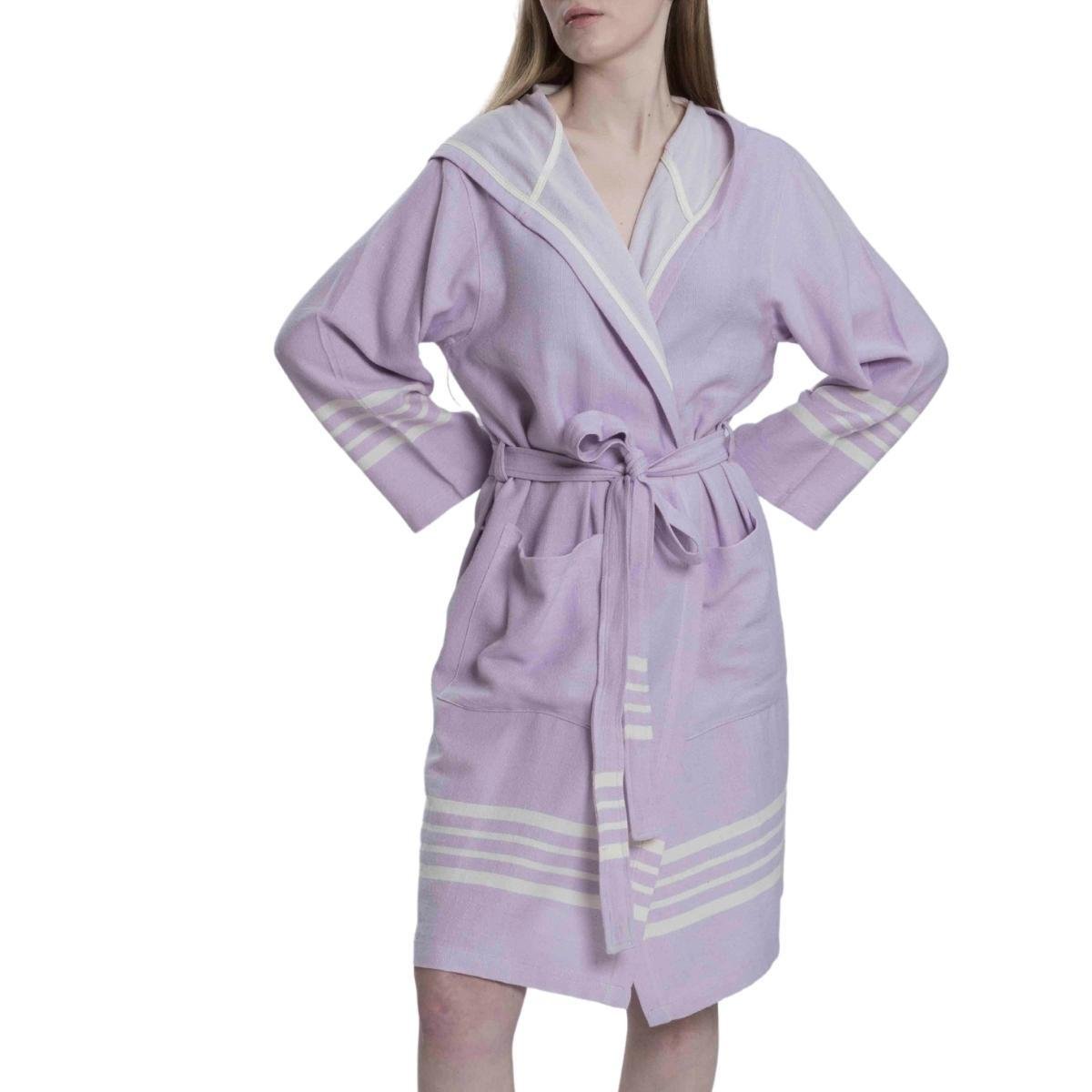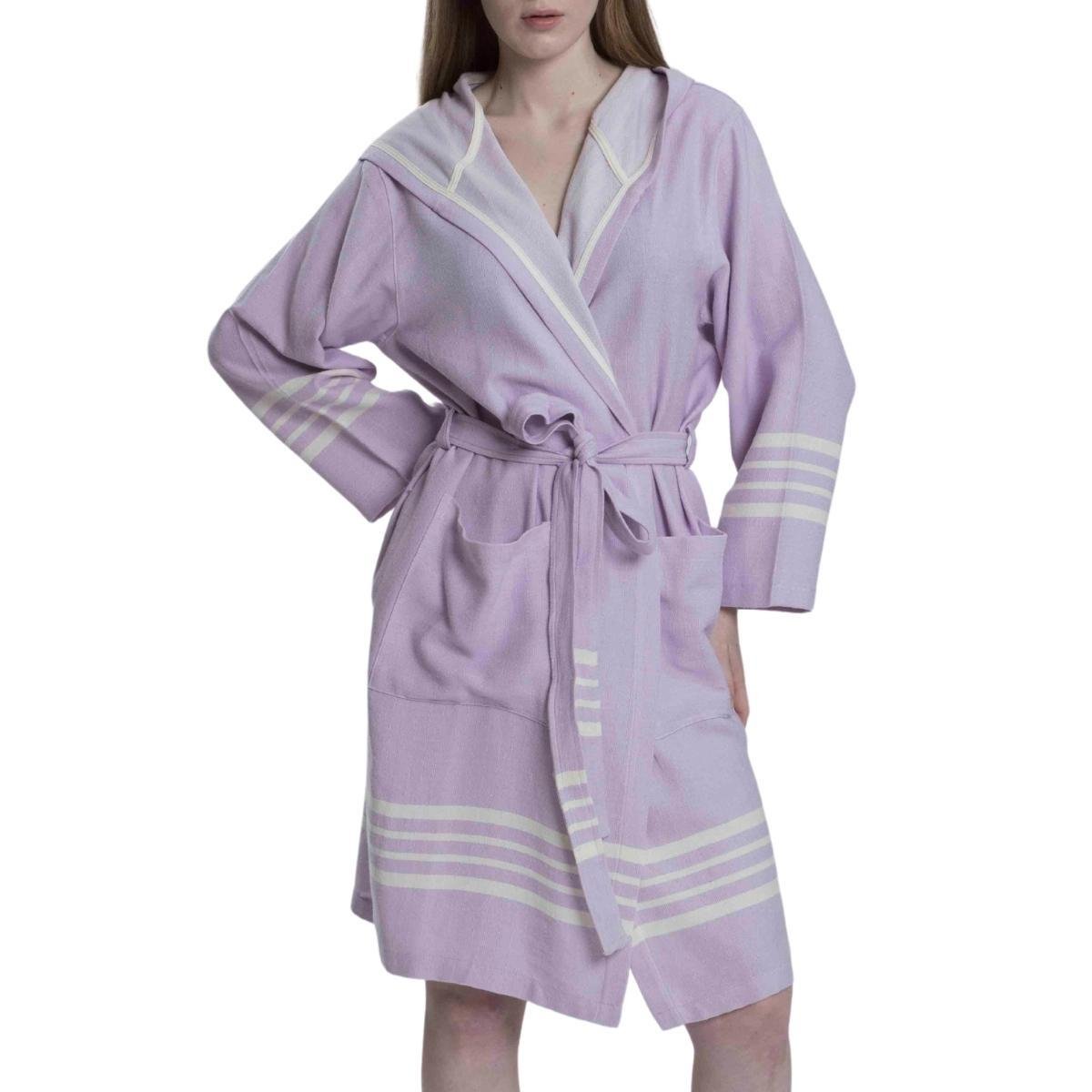 Krem Sultan Kapüşonlu Bornoz Açık Lila (01BOKKLKPS)