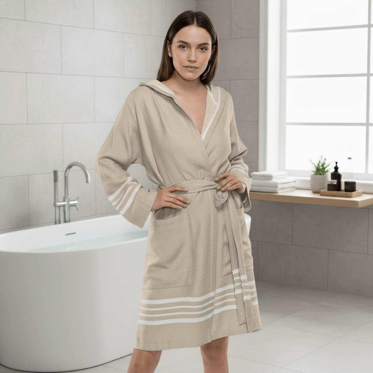 Krem Sultan Kapüşonlu Bornoz Bej (01BOKKLKPS)