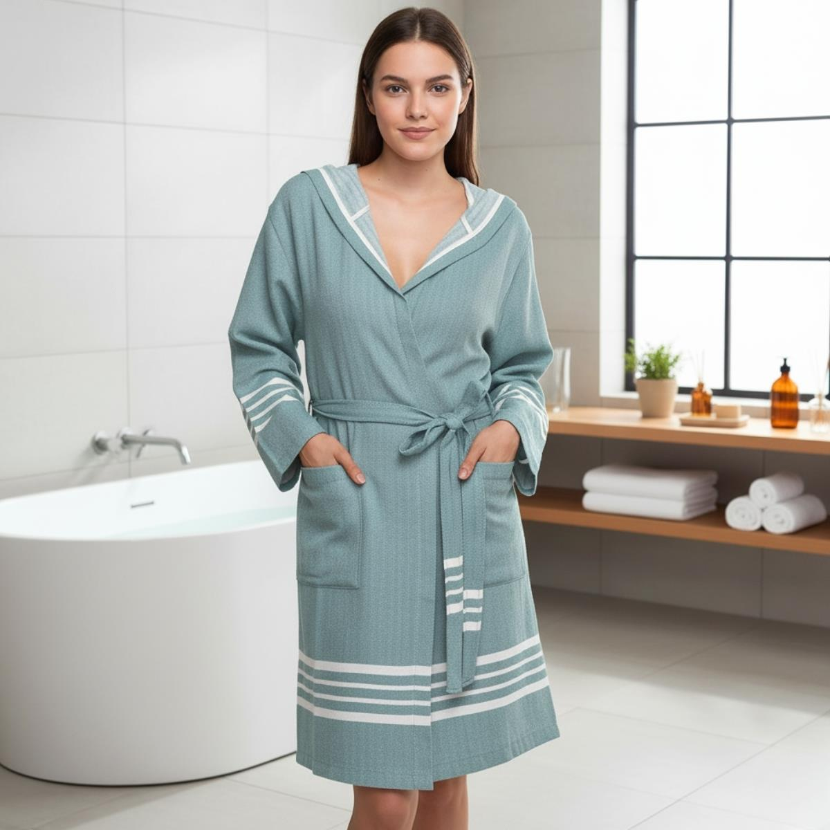 Krem Sultan Kapüşonlu Bornoz Çağla Yeşili