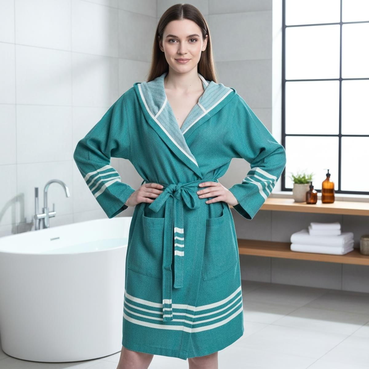 Krem Sultan Kapüşonlu Bornoz Fanfare Yeşili (01BOKKLKPS)