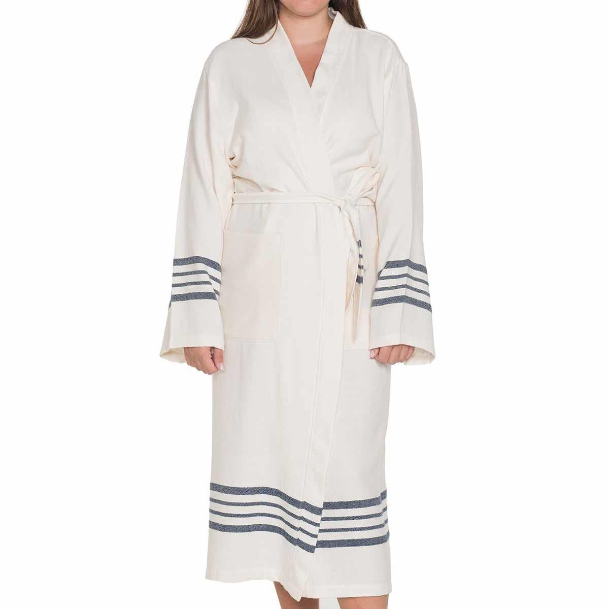 Krem Sultan Kimono Yaka Bornoz Ham - Lacivert (01BOKKLS)