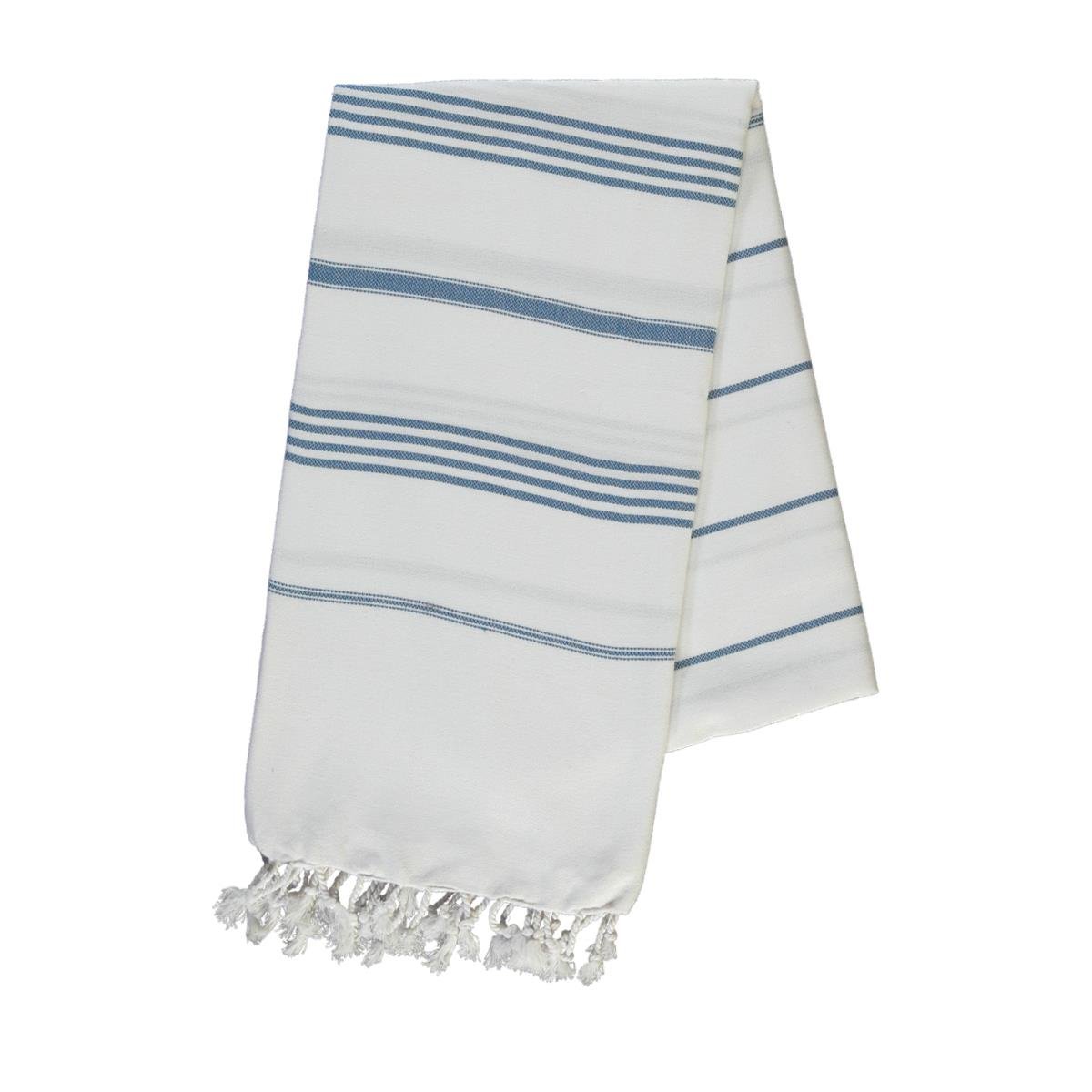 Leyla Peştemal Beyaz - Petrol Mavisi