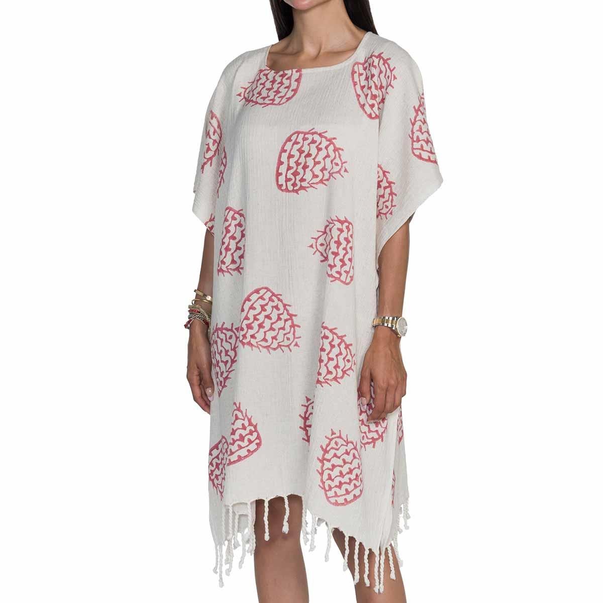 Handprinted Beachwear|Tunic Bereket 70% Cotton 30% Linen Standart Size 285 gramThe perfect cute, relaxed throw on summer dress with handprinted ! Round neck with short sleeves / Relaxed fit / Above knee lenght It is designed to be an extremely comfortable fit. It can be worn over jeans, leggings, or practically anything and will add style to whatever garment you have underneath. You can wear to any outing, at home, or gathering.Stoneprinted tunic will give you cover from the tropical sun while staying light and flirty. The short length tunic comes to above the knee and is made from hand-loomed sustainably-produced cotton&linen blend. Since our motto is "naturesake" we do not use any harmful chemicals in our production.