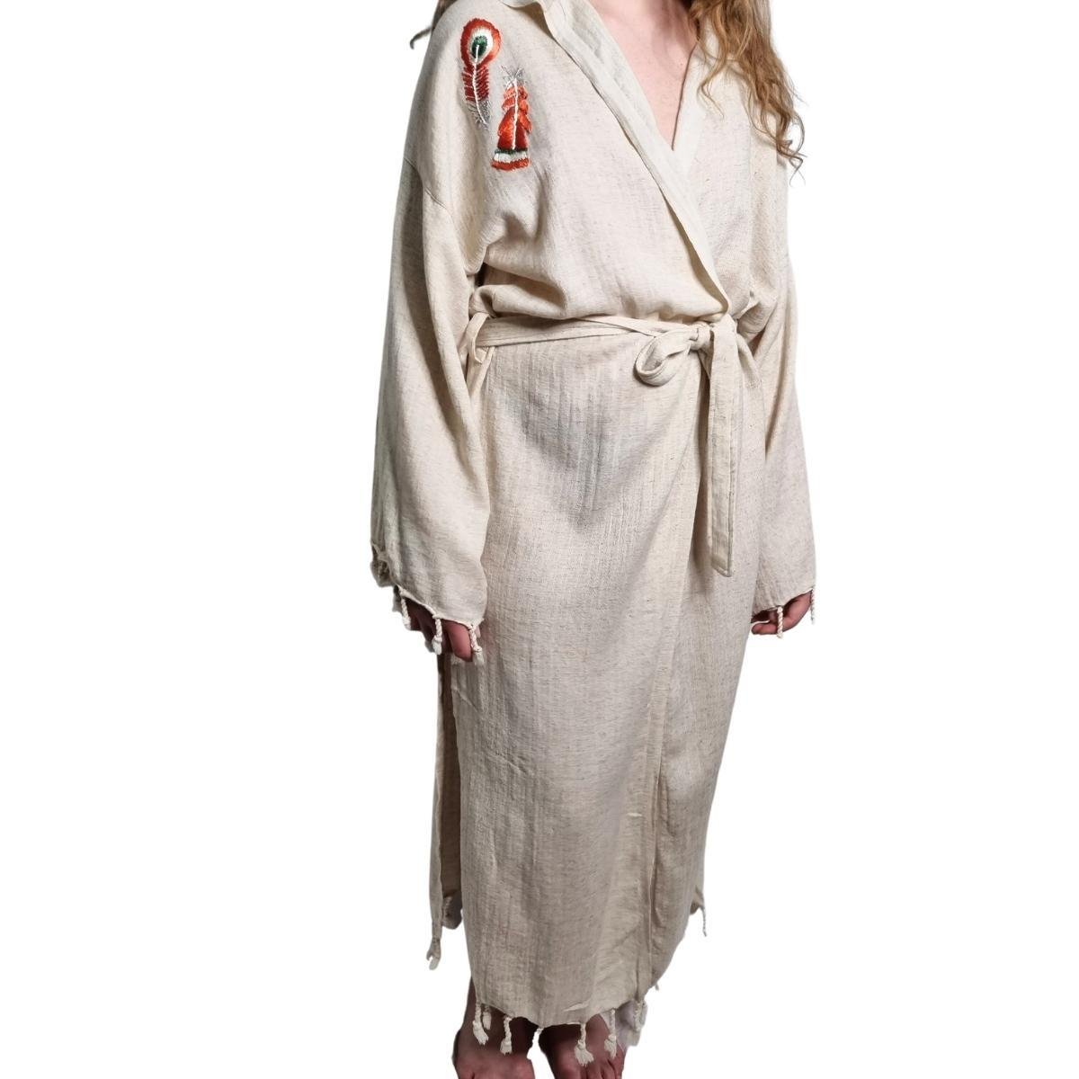 Tüy Nakışlı Kapüşonlu Kaftan %70 Pamuk %30 Keten 450 gram El dokuma kalitesi ve göz alıcı tasarımı ile fark yaratan bu kapüşonlu kaftan, hem şıklığı hem de rahatlığı bir arada sunar.Pamuk ve Keten karışımından üretilmiş olup, cildinize dost ve nefes alabilen yapısıyla dört mevsim kullanım için idealdir. Nakış: Renkli tüy motifleriyle zarif ve özgün tasarım Kapüşon: Rahat ve kullanışlı Yanlarda Yırtmaç: Hareket özgürlüğü sağlar El Dokuma: Yüksek kaliteli el işçiliği Bu kaftan, günlük giyimde rahatlıkla tercih edilebilirken, özel davetlerde de şıklığınızı ön plana çıkaracaktır. Doğal ve zarif tasarımıyla her gardıropta bulunması gereken bir parçadır.